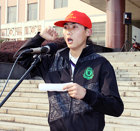 青年志愿者协会负责人齐畅宣读倡议书