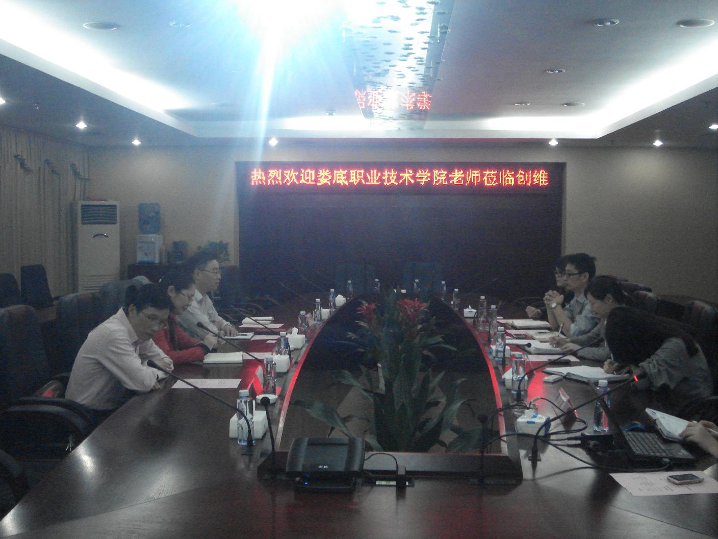 简要阐述了创维集团对专业人才的定位,表达了对娄底职院的高度认同,充分肯定了我院的办学成就,同时也表达了同我院开展校企合作的迫切意愿。娄底职院校企合作办主任王威然阐述了我院的基本概况、专业设置以及校企合作模式,对创维集团表示了充分认同,期待创维集团的所有子公司在框架协议指导下与我院各系各专业开展全方位的校企合作。电子信息工程系游新娥主任介绍了该系的专业设置情况,准确分析了本系专业同创维集团产业的紧密匹配度,表达了全方位合作的意愿。绩效主管陈萧微通过ppt演示概括了创维集团近年来的发展历程以及企业文化的宣传等。随后,在招聘管理经理田野的陪同下,我院一行四人参观了创维集团展厅,并一一体验了最新研发的多个新产品。在轻松和谐的气氛下,双方就创维集团与娄底职院签订框架协议达成了一致意见。