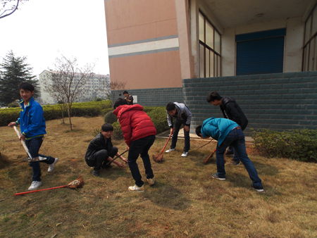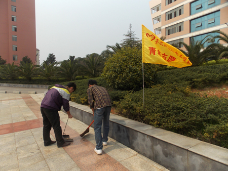 三月是学雷锋月,也是娄底市创卫生城市的关键时期,机电系的青年志愿者参加3月2日上午由院团委带队对娄底这个“大家”各条街道的清扫后,3月12日中午,机电系青年志愿者又从娄底职院这个“家”的教学楼四周及文化广场进行彻底的清理。