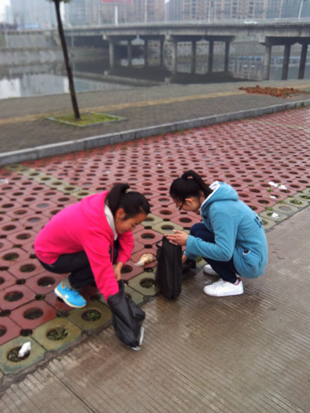 青年志愿者们“采访”了娄底市的母亲河――涟水河和孙水河,通过与附近居民们的交谈,大家对这两条河的历史有了相应的了解。随后机电系志愿者们开始了此次的学雷锋活动――用行动保护母亲河活动。