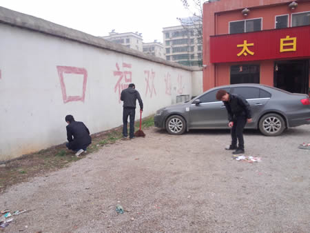 到达活动地点,各班志愿者在各班分队长带领下,按3月15日下午实地分工区域开始清扫:有的在街道两边的花圃中“寻宝”;有的清理墙上的牛皮癣,他们不怕苦不怕累,哪里有垃圾哪里就会有他们的背影,即使下雨也“迎雨而上”。