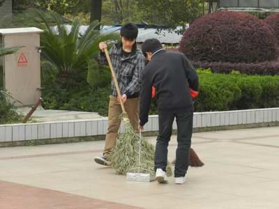 他们不怕苦不怕累,哪里有垃圾哪里就会有他们的背影,即使下雨也不畏惧。为保证街道上的干净,我班同学淋着雨在街上来回走动无数次进行检查,