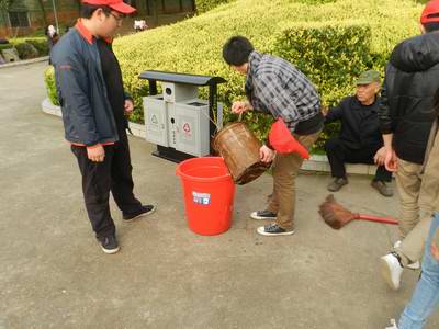 志愿者认真仔细地清除了道路和绿化带中的纸屑和果皮,还有一部分志愿者负责对公园内的市民进行文明劝导,得到了市民的配合及认可。