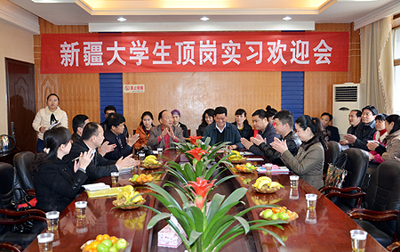 涟滨街道办事处党工委副书记、行政主任胡汉江主持欢迎会,他表示,为迎接实习学员的到来,办事处早在一个月前就开始准备,宽敞明亮、干净整洁的办公室,统一的桌椅、电脑和饮水机,一切都以高度负责的态度,认真筹备着新疆学员的顶岗实习工作。