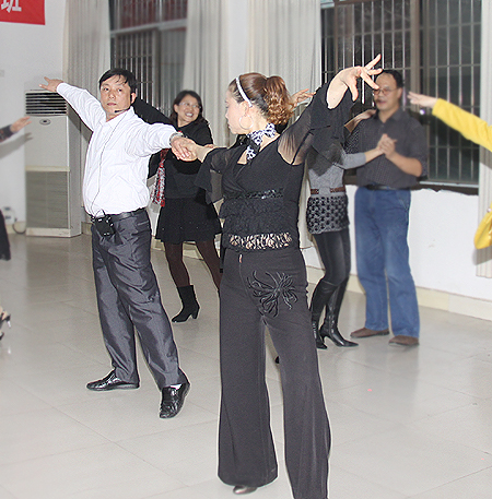 为丰富广大教职工的业余生活,加强教职工之间的交流互动,增进同事之间的友谊,提高教职工交谊舞水平,在院工会的领导下,学院歌舞健身协会从本学期第6周即本周到第15周每周五、周六晚7:30-9:30在工会二楼歌舞厅举办交谊舞培训班。培训全程免费,由刘寿松、刘杰、肖课程老师担任培训教练,以教练讲解示范,学员互教互学的方式,教授北京平四、桑巴、恰恰、伦巴、三步踩等交谊舞步。“学交谊舞很好,既可以锻炼身体,又可以增加社会交往,我们非常喜欢。”现场的学习者表示。(欧阳琦)
