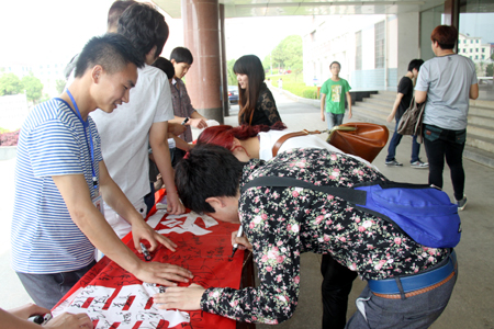 4月18日上午,由我院图书馆、宣传统战部、团委主办,读者协会承办的“世界读书日”系列活动之“读者签名”和“知识有奖竞答”在主教学楼举行。