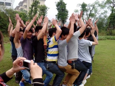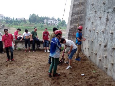 5月5日早晨七点半,资源工程系百余名大学生在系学工主任曾素纯和系辅导员周莉老师及素质拓展公司教练的带领下来到百雄堂拓展基地,参加拓展活动。在活动中,同学们相互支持,相互帮助,顺利完成了“合力桥”,“攀岩”,“空中单杠”,“毕业墙”等拓展项目。为了成功的完成“毕业墙”这个项目,同学们都踊跃发言,争先献计献策,甚至有的同学主动用“倒挂”,“悬浮”等高难度动作帮助最后一位同学越过“毕业墙”。