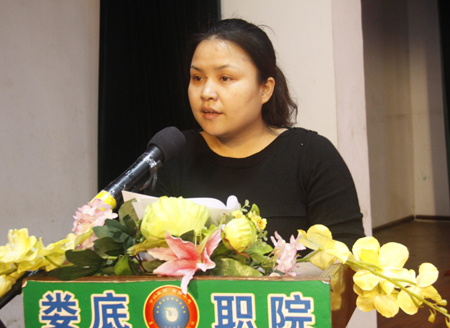 随后,学员代表财贸系学生费丽丝发言,她代表全体学员宣誓:在学习期间提高学习意识,坚决完成学习任务;严格组织纪律,遵守各项规章制度;正确处理专业学习和政治素养提升的关系;结合学习和工作,学以致用。