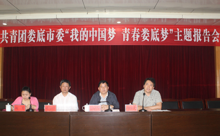 5月21日,由娄底市委讲师团主任谭清华主讲的共青团娄底市委“我的中国梦 青春娄底梦”主题报告会在我院多功能报告厅举行,我院党委副书记欧友佳、团市委副书记周庶舟、院团委书记欧芳出席报告会,学生代表200余人到场聆听。活动由院团委承办,欧芳主持本次报告会。