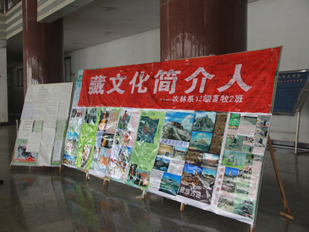近期,农林系12畜牧二班发起并组织的西藏民俗风情文化展分别在主教楼大厅、新培训楼进行了半个月巡回展览。