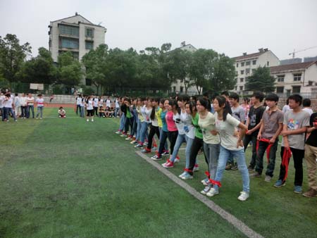 此次比赛共有12支队伍参加,随着裁判一声哨响,比赛正式开始。队员之间腿腿相绑、肩搭肩、互相帮助、互相配合、齐喊口号,共同冲向终点。加油声、呐喊声、欢呼声使整个赛场一片沸腾,欢声笑语在校园上空回荡。经过一番比拼,12建筑二班、12机电一班、12机电三班获男子组一二三名。12会计二班、12酒管一班;12会计一班、计应班;12酒管二班分获女子组一二三名。12会计三班获优秀组织奖。(中专部)