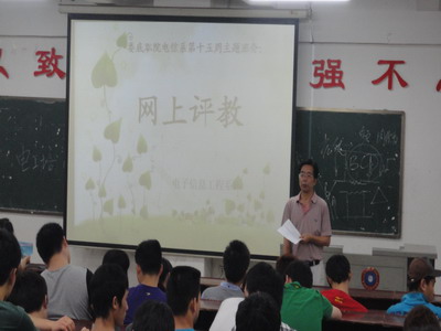 6月2日晚上,电信系在主教学楼开展了网上评教和安全教育主题教育,系学工主任李规和辅导员彭继光、李韶辉、梁飞翔与系部全体学生一起参加并进行讨论。