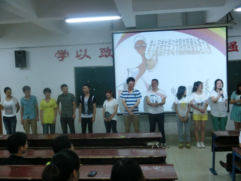 为更好地锻练学生的综合素质,电信系于6月7日晚上在主教学楼举行了第九届青年学习节图像处理技能决赛。通过班级选拔,全系共有11位同学进入到本次的决赛。电信系学工主任李规、学工干事佘彬、辅导员彭继光、梁飞翔和各班学生代表一起在现场观摩了本次比赛。