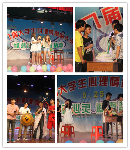 此次比赛由学工处和团委主办,以“和谐心灵、追寻梦想”为主题,内容涉及爱国、荣校、人际关系、网络、亲情、爱情等日常生活的方方面面,客观真实地反映了当今大学生心理问题多发的真实现状。最后,由电信系选送的《网瘾》获一等奖,农林系选送的《同圆中国梦、共铸娄职魂》、财贸系选送的《给心灵一点阳光》、公管系选送的《迟来的呼唤》等3个节目获得二等奖,机电系选送的《幸福在身边》、外语系选送的《其实我不孤单》、建艺系选送的《致我们已逝的青春》、财贸系选送的《执子之手与子偕老》、汽车学院选送的《父爱如山》等5个节目获得三等奖。