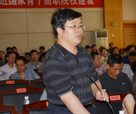 7月10日是中心组扩大学习、国家骨干校高职院校项目建设专题培训会议第二天。教育部国家示范性高职院校建设项目专家、江苏省人民政府决策咨询研究基地专家(职教)、江苏理工学院高等职业教育发展研究所所长王明伦教授作专题讲座,全体院领导、副科以上中层实职干部、骨干校项目所在单位负责人、骨干校分项目、子项目负责人、教研室主任、专业建设负责人、精品课程建设负责人、教授、博士参加了会议。