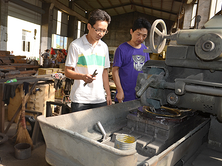 在位于娄底经济开发区的三湘焊接材料厂里,我院模具专业教师吴光辉、康兵老师正在专注地盯着转动的平面磨床上的零件,随时准备调整。他们在这里主要是进行模具制造流程、生产工艺流程的实践。“我教CAD和PROE两门课,在这里体验到的真实生产线上的情况,将极大地充实我的课堂教学内容。”