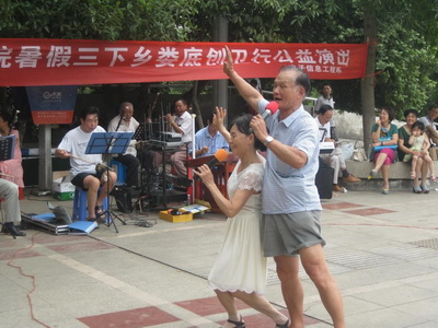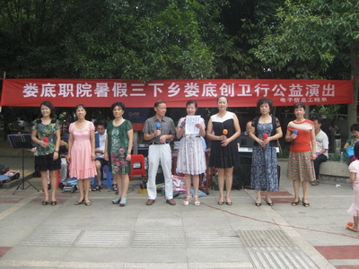 8月18日上午,娄底职院电信系暑期“三下乡”娄底创卫行在娄星广场进行了公益演出,活动得到了市老科协湘中艺术团、天天乐、红歌会乐队大力支持。