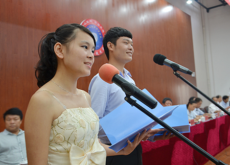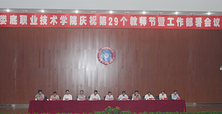 学生代表的“老师,请让我告诉您”的诗朗诵给全体教师献上了一份精彩的礼物。党委委员、副院长龙伟宣读“立足岗位创佳绩,争当先进建骨干”活动方案。党委委员、副院长颜彩飞通报教师新村建设情况。