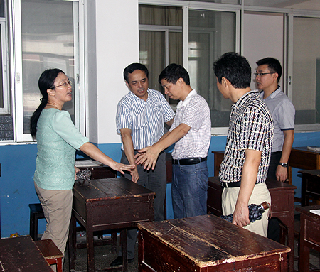 9月23日,湖南省考试院副院长邓建国率督察处处长程志群、自考处处长邱业吉、自考处副处长刘珍一行来到娄底,在娄底市教育局副局长高静、娄底市教育考试院院长罗志银等陪同下,对我院教育考试标准化考点建设项目进行实地验收。我院副院长周意坚和相关部门负责人参加汇报会并陪同考察。会议由周意坚主持。