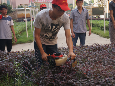 志愿者们带着工具来到指定地点,在专业老师的指导下开始剪枝,为绿化带苗木热情“服务”。期间虽然也出现了机器设备不会使用和植物修剪不整齐等问题,但在阳老师的耐心指点下,绿化带逐渐修剪整齐。