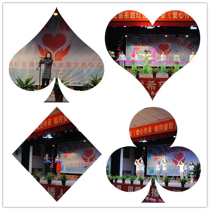 为感恩社会,弘扬中华民族“扶弱济贫,无私奉献”的优良传统,同时为成为有目标,有理想的当代大学生,肩负社会责任,奉献自己的爱心。11月18日晚,财经贸易系燃灯公益协会《爱心传承 相约娄职》晚会庆典暨交接仪式在南苑礼堂举行。娄星区团委书记彭淋琪、学院团委书记欧芳、武装保卫处处长邹涛、财贸系学工主任刘媛、团委老师杨翰如出席了本次交接仪式和庆典。到场的还有燃灯公益协会全体会员、财贸系13级全体同学以及学院各系部现场观看晚会的同学。