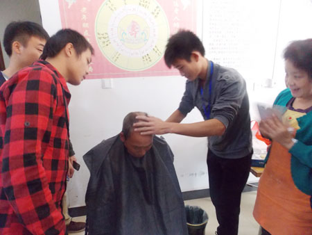 这些志愿者主要是来自13级的入党积极分子,这也是党校培训重要的实践课环节,他们表现尤为突出。志愿者们有序的进入老人们的房间后,有陪老人聊天的、有为老人打扫房间卫生的、有陪着老人下棋的,更有几名细心的志愿者还为老人理发、捶背、剪指甲等。对于慈善志愿者的行动老人们感到非常的开心。