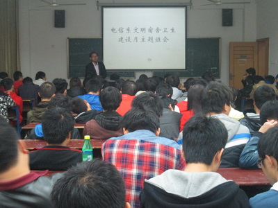 为了加强宿舍管理,提高同学们的道德修养和文明素质,为同学们创造出一个舒适的居住环境,电信系于11月24日晚上在主教学楼310开展了文明宿舍卫生建设月的启动仪式,全体学生党员、系学生会、团总支干部、全体班干部、寝室长参加了本次启动仪式。