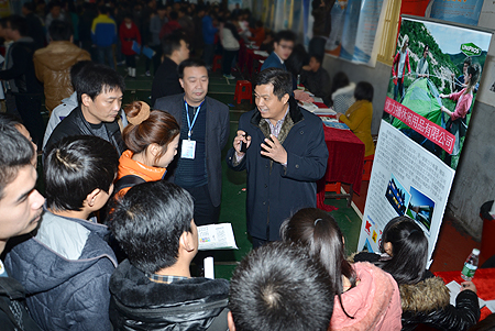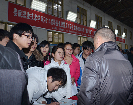 “娄底职院2014届毕业生供需见面会暨娄底市2013年‘走进校园’专场招聘会”由我院与娄底市人力资源和社会保障局、娄底市财政局联合主办。一大早,副市长甘跃华率市教育局、市大中专毕业生就业指导中心等单位领导来到招聘会视察。我院党委书记李文莲等院领导陪同。甘跃华详细了解了参会企业情况,高度评价学院组织有序,各项工作到位。据悉,我院应届毕业生有2716名,已有600人通过班级订单等形式签约。此次参会有152家企业(其中湖南企业68家,娄底企业34家),共提供约7100个岗位。企业提供的岗位涉及电子、机电、建筑、市场营销、网络、酒店管理、旅游管理、财会等专业门类,提供的薪资待遇普遍较好,许多企业给实习生起薪2400元/月,加上各种福利、补贴(如上海大众斯柯达公司转正后提供16个月薪水,富士康科技集团提供非常有诱惑力的薪资待遇,试用期税前综合工资3800-4400元,转正考核后4100-5000元),月均3500元左右。