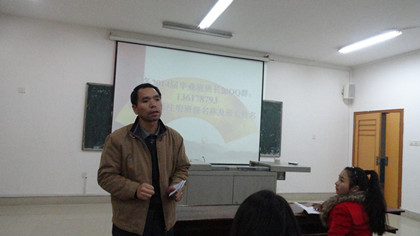 12月23日晚七点,外语系11级毕业生就业指导讲座在主教楼619举行。由招生就业处郭平老师主讲,该系学工主任贺建良及11级全体毕业生聆听了讲座。