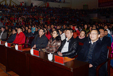 12月30日晚,随着一段婉转悠扬的舞蹈《梦》,我院2014年大型元旦综艺晚会在市体育中心室内篮球馆拉开帷幕。篮球馆内喜气洋洋,热闹非凡。副市长甘跃华、市委宣传部常务副部长何一波、市总工会副主席邓焕章、团市委书记周海强、市妇联主任康艳华、市文化局局长李东升、市农业局局长秦建华、市煤炭局局长陈跃进、市体育局局长魏志军、市移民局局长伍岳等领导以及我院全体院领导莅临晚会。学院各部门负责人与全院师生一起观看了演出。