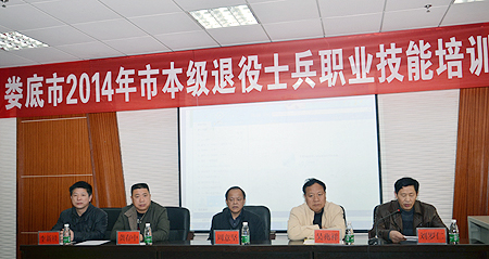 3月22日,娄底市2014年市本级退役士兵职业技能培训班在我院综合楼101教室开班。娄底市民政局党组成员、纪检组长吴兆祥,我院党委委员、副院长周意坚,市民政系统工会主任兼安置办主任龚存中,办公室副主任李新桂,我院继续教育部主任刘罗仁出席了开班典礼。