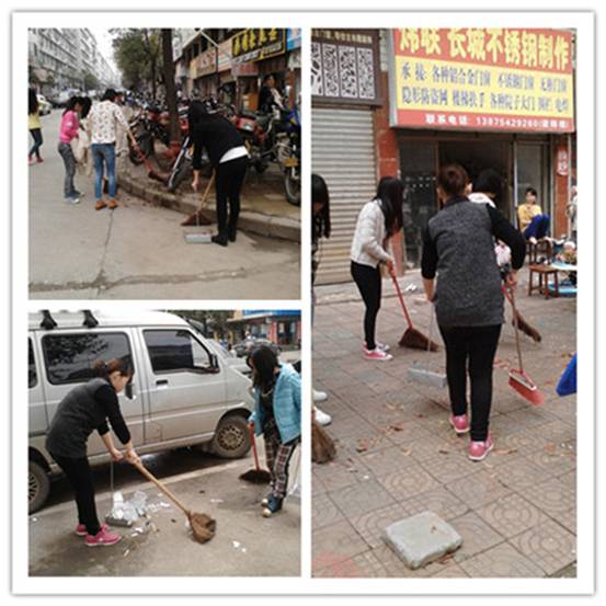 志愿者们手持工具赶往指定地点,到达目的地后,大家分工合作,干得热火朝天。同学们不怕脏不怕累,认真仔细对路面进行清洁,经过志愿者们一个多小时的劳动,很快就使整个社区焕然一新。