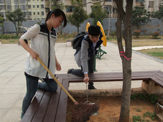 下午1点整,同学们准时到达集合地点。由班长段鑫负责给每位同学分配任务。有了合理分工,大家积极配合,不怕脏不怕累,把捡到的垃圾装进它该去的地方去。经过一个小时的清理行动,很快就使整个健身广场焕然一新。而他们也成了校园里一道亮丽的风景线,默默地奉献自己的力量。