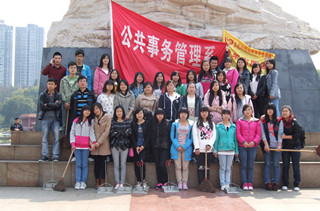 三月阳光和煦,为切实践行雷锋精神,3月24日,公管系13旅管大一班由班长曾玺带领的学雷锋小分队前往石马公园开展学习雷锋活动。