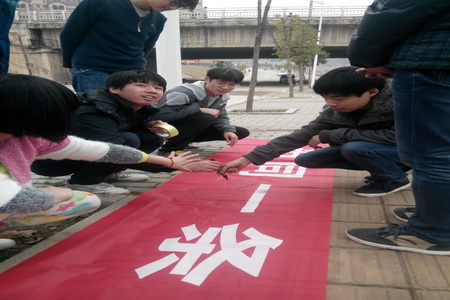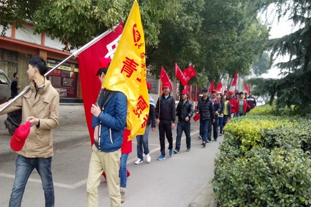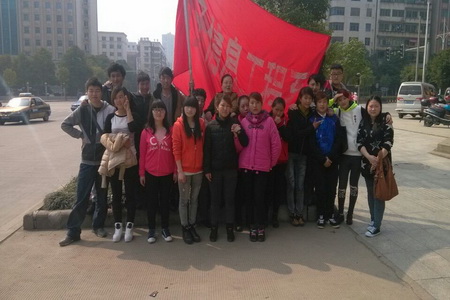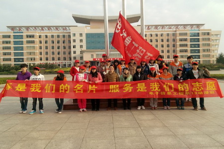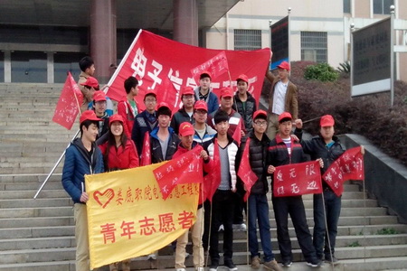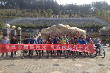 3月14日,13应电班的志愿者们骑着自行车拉着“用爱心播撒阳光,用高尚践行平凡”的横幅从学院出发在株山公园开展了一次绿色环保宣传活动。