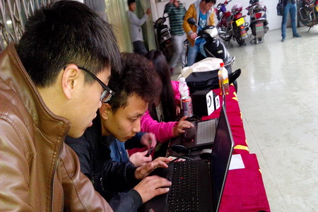 3月26日,电信系计算机维护协会利用自己计算机专业的特点在学院北苑食堂门口开展了免费电脑义诊活动。