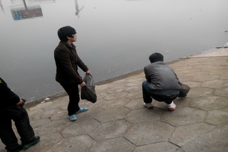 上午八点钟,13软件班的同学们在班委会的组织下骑着自行车来到二大桥下涟水河旁。同学们一走到河边,看见绿化带和河边到处都是垃圾。在班干部的带领下,他们发扬不怕脏不怕累的精神,对沿河走廊、绿化带的垃圾进行了认真清理。随后还举行了“为同一条河流,献同一份爱”的签名活动。