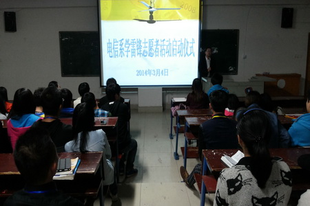 为了更好地开展3月份的学雷锋志愿者主题活动,3月4日晚上,电信系在主教学楼召开了学雷锋志愿者活动启动仪式。系部辅导员与全体系学生会、团总支干部与班团干部参加。
