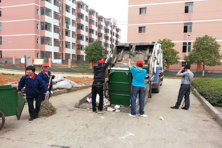 帮助工作人员清理垃圾