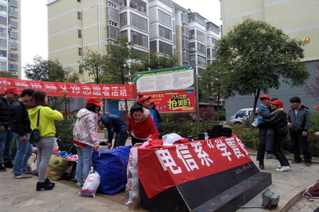 活动一开始,志愿者分为二个分队开展起相关活动。由于有前期的宣传准备工作,今天很多电脑出故障的小区住户周末时间特意选择在家里等候,志愿者们不停的在小区住户家中用自己所学的专业知识解决电脑的种种难题,有时志愿者们还会跟住户们普及计算机的相关应用知识,每当电脑在志愿者手中运行速度变快时,住户们都会对我们发出一阵阵赞扬。当小区住户得知我们另一分队来收集不要的衣物、鞋子等物品是将其送到福利院和需要帮助的人手中时,有些小区住户主动把我们请到家中,翻着自己的衣柜,其中有一住户从家中找出3大袋衣物交到我们手中,其中还有一部分是较新的。
