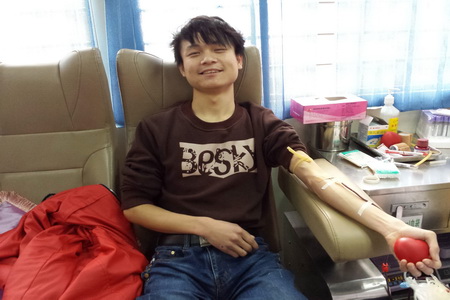 在活动过程中,熊流海同学因为一点小问题还和其他同学闹了小矛盾,不一会,熊流海不见了,同学们以为他发小脾气提前离开时,突然有同学看到熊流海坐在献血车上正插着针管…,当时同学们就惊呆了,因为熊流海身体看上去很瘦弱,瞬间,志愿者们就好像被给打了一针强心剂,身上所有的疲备都消失了。