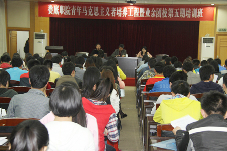 4月22日,伴随着激扬的《中华人民共和国国歌》,我院业余团校第五期培训班在多功能报告厅隆重开班。院党委副书记欧友佳、院团委书记欧芳、各系部学工主任出席,各系团总支书记和223名学员参加了开班典礼。典礼由业余团校辅导员杨翰儒老师主持。