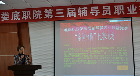 4月30日,第三届辅导员职业技能竞赛之“谈心谈话”“案例分析”项目比赛在综合楼101教室进行。比赛由学工处副处长戴志鹏主持。各系主任、党总支书记、全体辅导员观看了比赛。