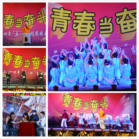 为纪念“五•四”运动,进一步弘扬“五•四”爱国精神,发挥先进典型的模范带头作用,表彰我院优秀先进集体和先进个人,引导全院广大团员青年积极进取,展现大学生的风采,5月5晚,我院纪念“五•四”运动95周年暨颁奖晚会在文化广场隆重举行。院长雷立成、党委副书记欧友佳、副院长龙伟、刘自斌、袁其谦、郭广军、正处级干部向右铭等出席晚会,各系部党支部书记、学工主任学团系统的老师和全院学生观看了此次晚会。
