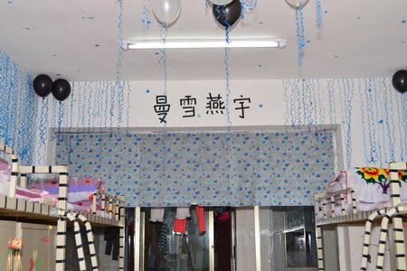 寝室空间布置大赛中,寝室成员各出主意,同学们利用在网上购买的壁纸和小饰品对寝室进行布置,而西藏籍学生将自己寝室布置成具有浓郁民族特色的风格,有的同学利用丢弃的矿泉水瓶制作成吊灯做为装饰,还有很多女同学纯手工制作了剪纸、绿叶和编织花对宿舍进行了装扮。经过十多天的精心准备,每个寝室各具自己的风格和特色,通过系部评比,最终,7栋716和14栋128获得了寝室空间布置大赛一等奖,7栋516、713、715和14栋113分别获得二等奖,7栋512、6栋718、629和14栋115分别获得三等奖。