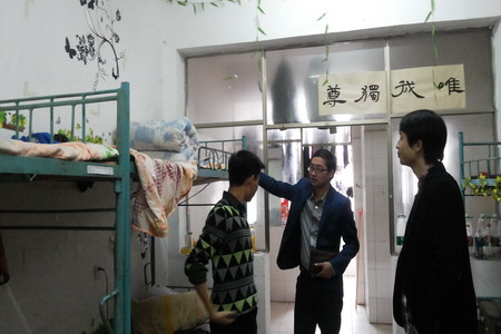 4月15日下午,电信系学工主任李规、学工干事佘彬、全体辅导员与系男、女生干部对本系6栋、7栋、14栋学生寝室进行安全排查。