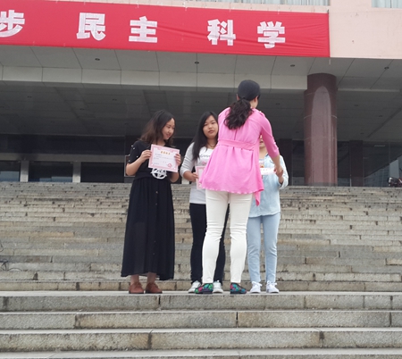 晨训结束后,刘媛为在“宿舍文化艺术节”中获奖的班级和个人颁发了获奖证书及奖金。本次颁奖项目共设乒乓球,诚信演讲,拔河以及宿舍DIY作品四个奖项。颁奖活动的举行充分带动了学生们的奋斗热情,激发了大学生的校园生活热情,增长了同学们的团结性与协作性。为自己的大学生活留下精彩的回忆。