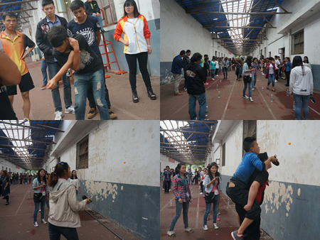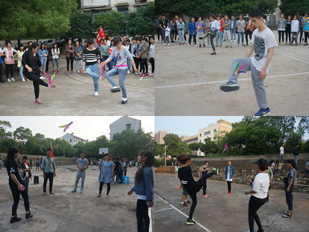 5月15日,40个寝室代表队在科技楼羽毛球场进行了毽子专场趣味运动会,经过“三人接力”、“花式毽子”、“毽子王”三个环节比赛,14-618、2-308、2-301、2-208、14-623、14-622获得前6名。