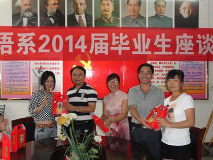 为了让14级新生感受到大学校园的温暖,9月8日晚7点,外语系全体新生在主教楼110举行“庆中秋、叙友情”座谈会,学工主任贺建良、辅导员周春红、助理班主任和2014级全体新生参加