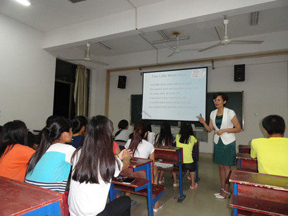 刘主任在主教楼406教室为应用英语专业的学生进行了专业讲座,首先向同学们提出三个问题“What’s your major?” “Why do you choose English as your major?” “Why do you choose an English teacher as your job?”,接着,她从为什么、学什么、考什么、有什么、干什么、怎么学六个方面介绍了应用英语专业的市场需求、就业方向、开设的主干课程以及在大学期间要考的职业资格证书等知识,强调本专业所开设的课程都是面向初中、小学及幼儿英语教师所必备的素质。讲座课件图文并茂,实例生动有趣,学生积极参与,师生互动,进行了“Two Little Black Birds”和“Number Song”英文儿歌的学习和操练。